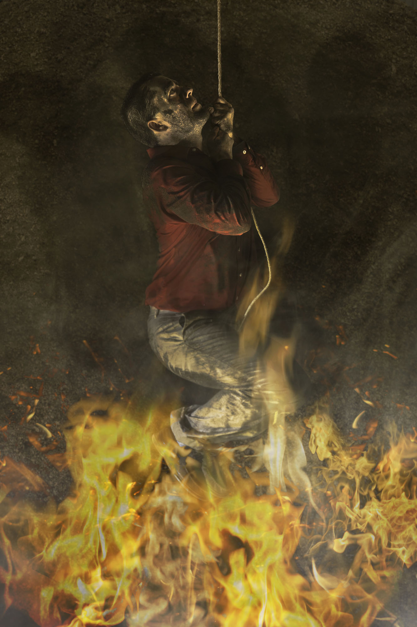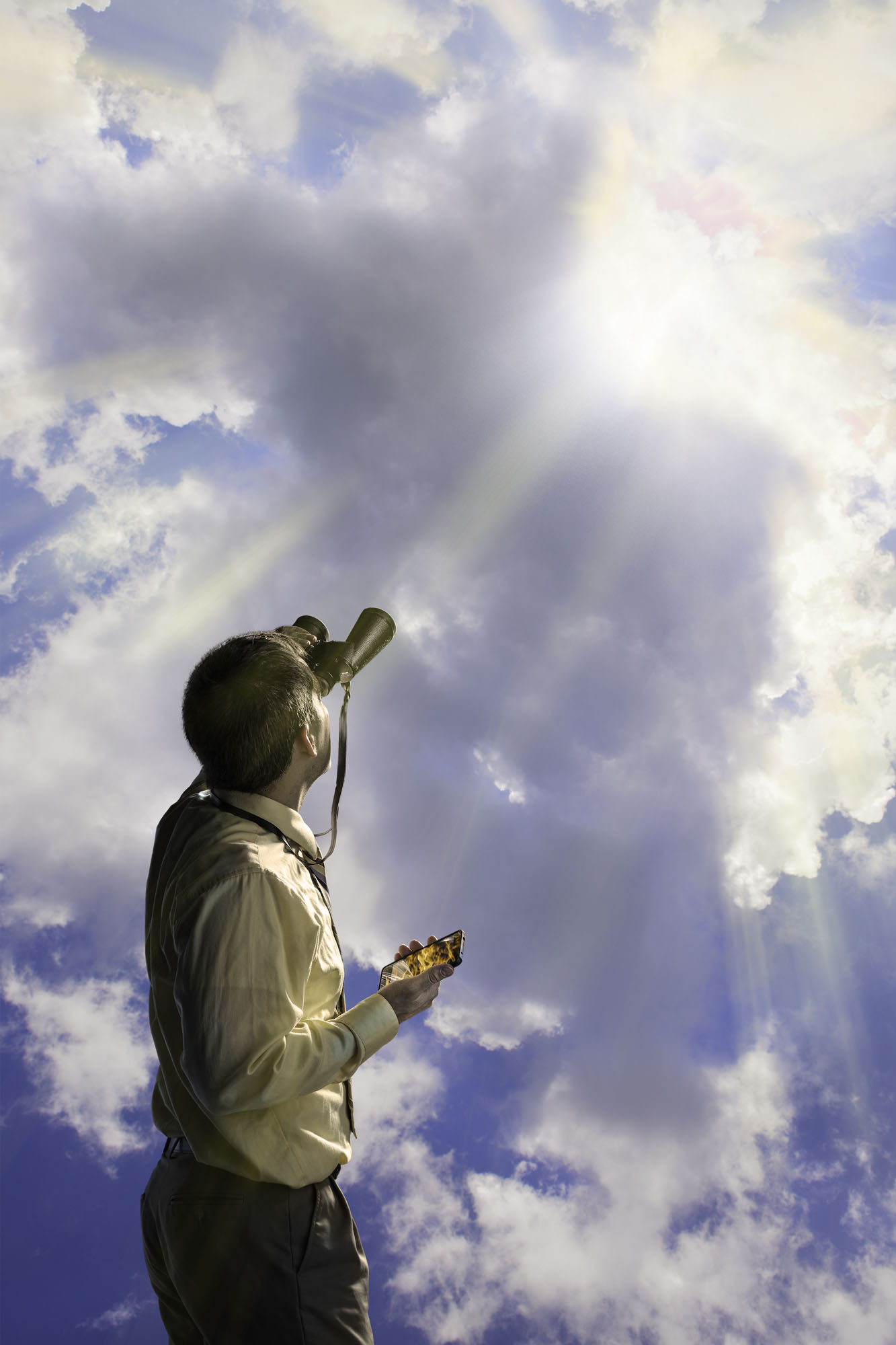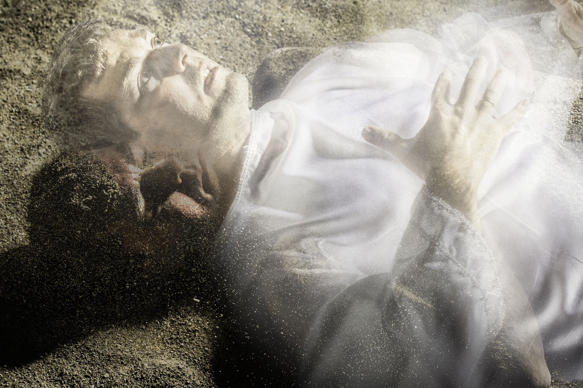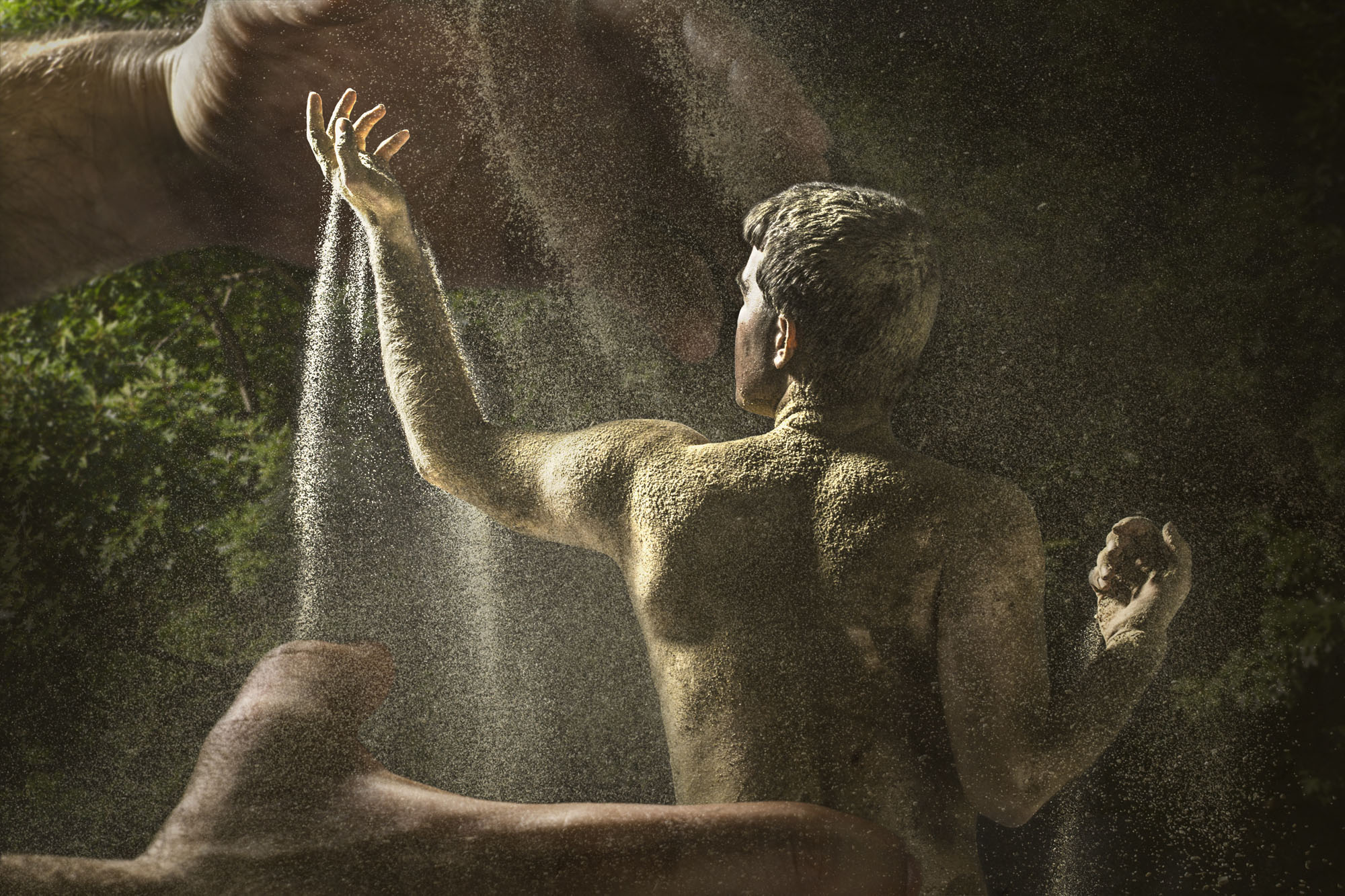 I shot the project digitally using the RAW file format and manual exposure on the 20 megapixel Canon 6D and various Canon lenses. Most of the pictures consist of four or more pictures using the digital format, which worked best because it allowed for an easier method of creating montages in Photoshop that many times consisted of 20 or more layers. Using Smart Objects on the original RAW files allow for subtle transitions in exposure, blur, sharpness, and color to blend the elements to create one unified piece. In Adobe Photoshop I used individual adjustment layers and clipping masks to assist in the fine details of compositing of each piece. The digital montage techniques represent the marriage of the physical and spiritual realms to visualize my concepts and beliefs in a way they could not be completed another other way.