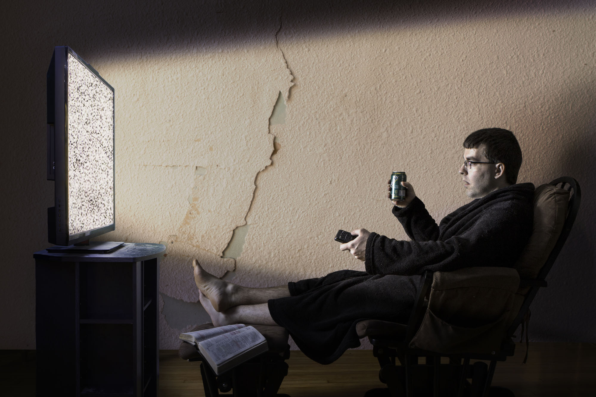 I am using both low and high keyed compositions with minimal separation in background and subject. Much of my project uses different angles and dramatic lighting that is keyed from the back or side. The light has a harder shadow edge transfer to help communicate the dramatic moods of the scenes. At times the lost and found contour lighting requires the viewer to piece the imagery together psychologically.
