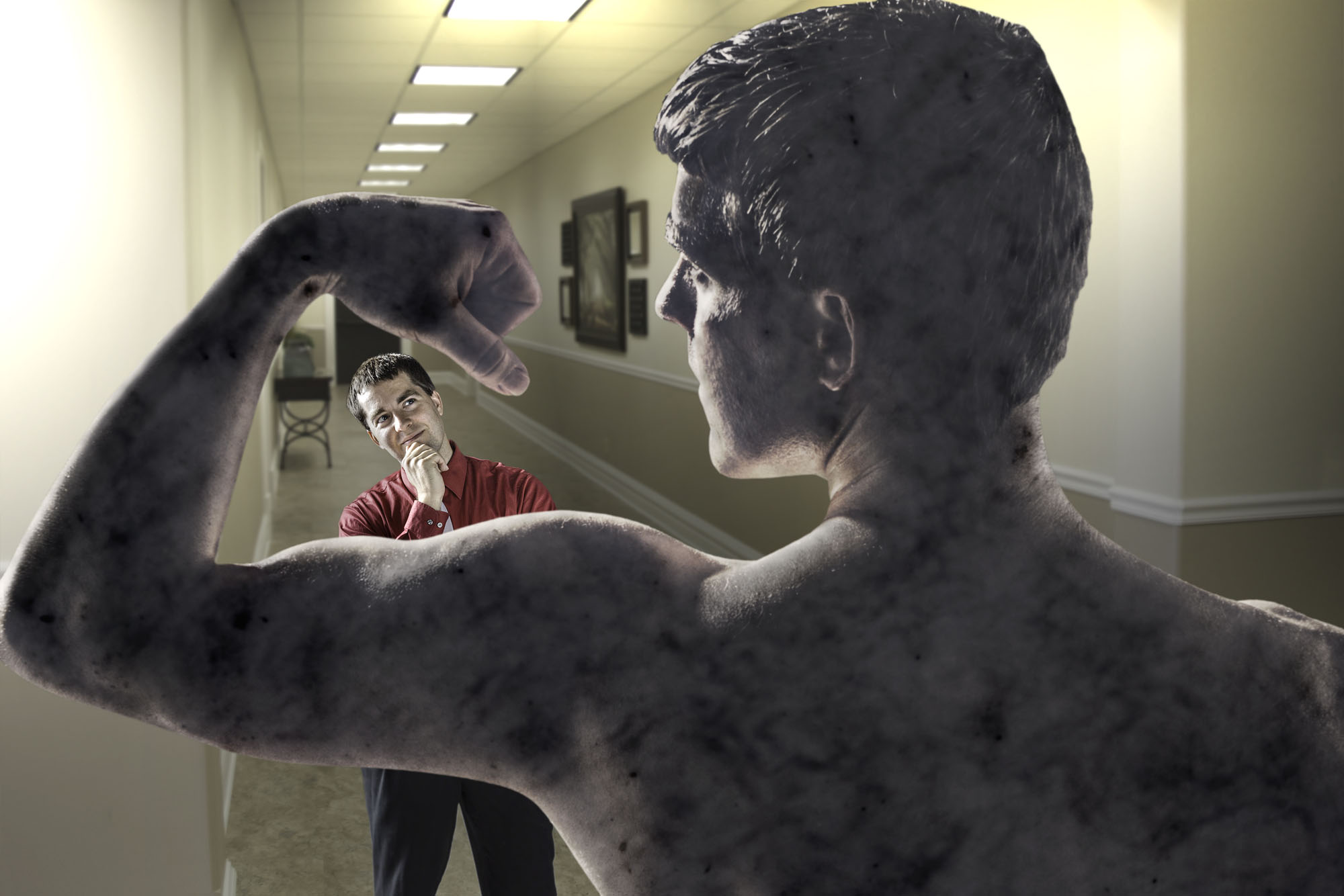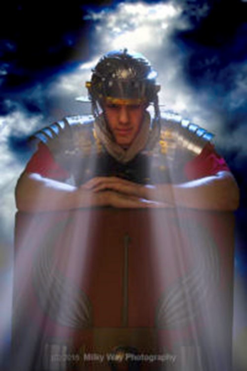 The germ idea for this project dates back to the fall of 2013 in Photography Concept with Shannon Ayres. He pushed me to explore what was most important to me. It was during Ayres’ class I started shooting conceptual pictures of my brother in authentic Roman armor. My early digital montage work needed vast improvement so I took Digital Montage in the spring of 2014. My Advanced Photoshop directed study in the Fall of 2016 prepared me even more for the level of detailed work I needed. Now I have become even more passionate with the connection behind my spiritual concept, grounded by my faith and my love for the art of photography. After passing the Midpoint Review, I continued to study more of the artists and photographers who have inspired me. This awareness of the great masters of the camera helped me improve and refine my own unique style.